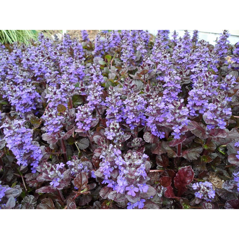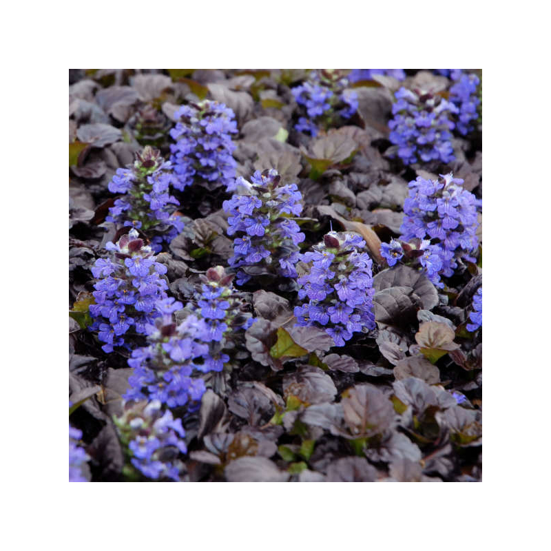 Ajuga reptans ‘Black Scallop’ is een sterke, laagblijvende bodembedekker met opvallend donkerpaars, bijna zwart blad. In het voorjaar verschijnen frisse blauwe bloemen die prachtig afsteken tegen het donkere blad. Deze plant groeit snel, blijft mooi dicht en is ideaal voor borders, rotstuinen of onder beplanting. Bovendien is hij winterhard, makkelijk te onderhouden en trekt hij bijen en andere nuttige insecten aan — een stijlvolle en praktische blikvanger voor elke tuin.