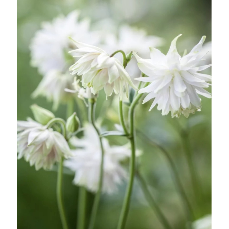 Aquilegia ‘White Barlow’ is een elegante, goed doorbloeiende akelei met opvallende, gevulde witte bloemen die lijken op kleine sterren. Ze bloeit rijk van mei tot juni en brengt licht en beweging in de border. Deze vaste plant is sterk, winterhard en onderhoudsarm: eenmaal geplant komt ze jaar na jaar terug.