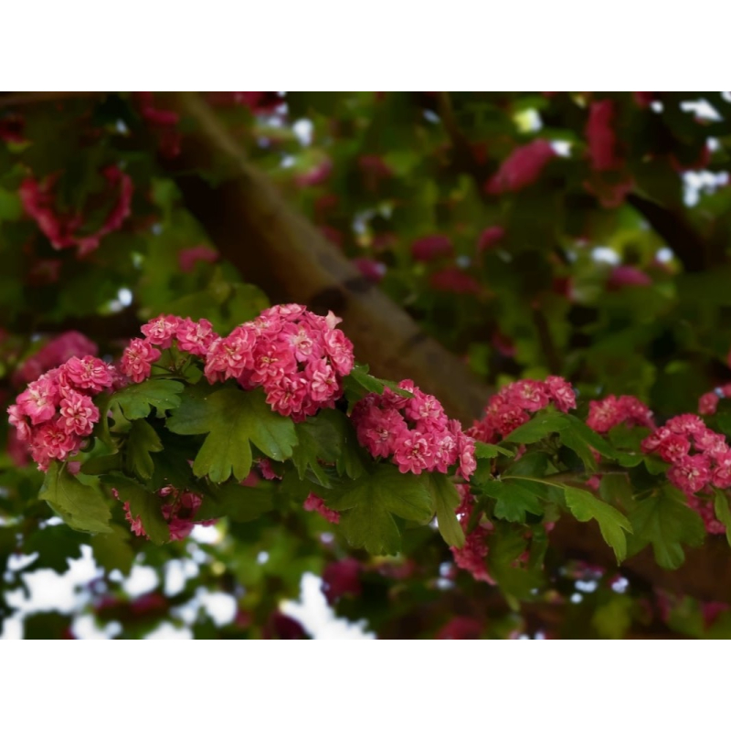 Crataegus laevigata Pauls Scarlet Meerstammig (Rode Meidoorn) - Rode bloemtrossen zorgen voor een verbluffend effect