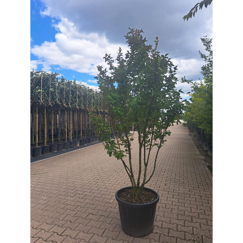 De Meerstammige Lagerstroemia indica, ook wel bekend als de Indische sering, is een sierlijke en opvallende meerstammige boom. De Lagerstroemia heeft een rijke roze bloei en wordt zonder snoei zo'n 5 meter hoog.