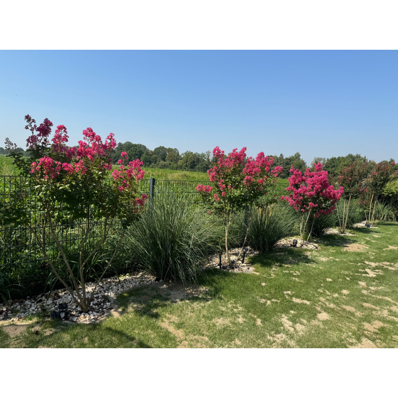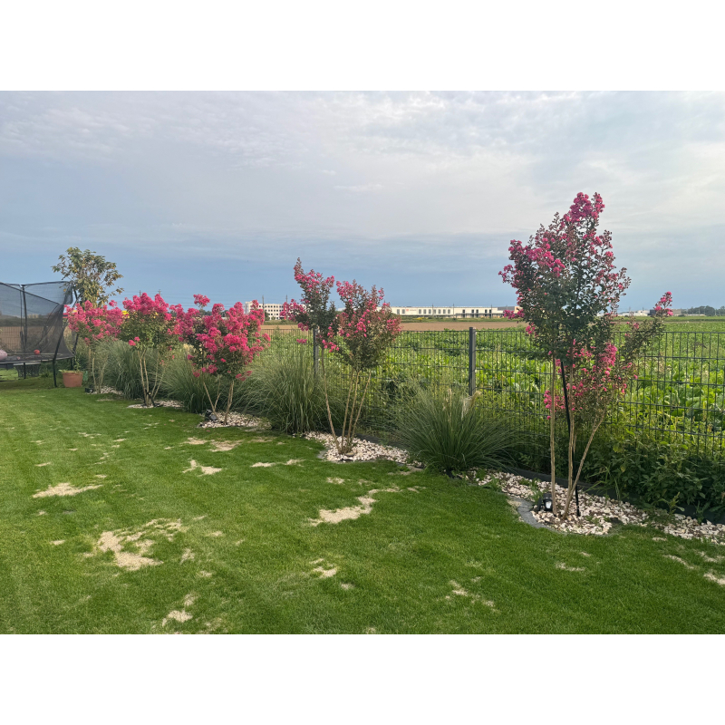 De meerstammige Lagerstroemia Indica heeft intens roze bloemen die in de zomer verschijnen. Voor wie van bloemen, geur en kleur houd, is deze boom zeker aan te raden.