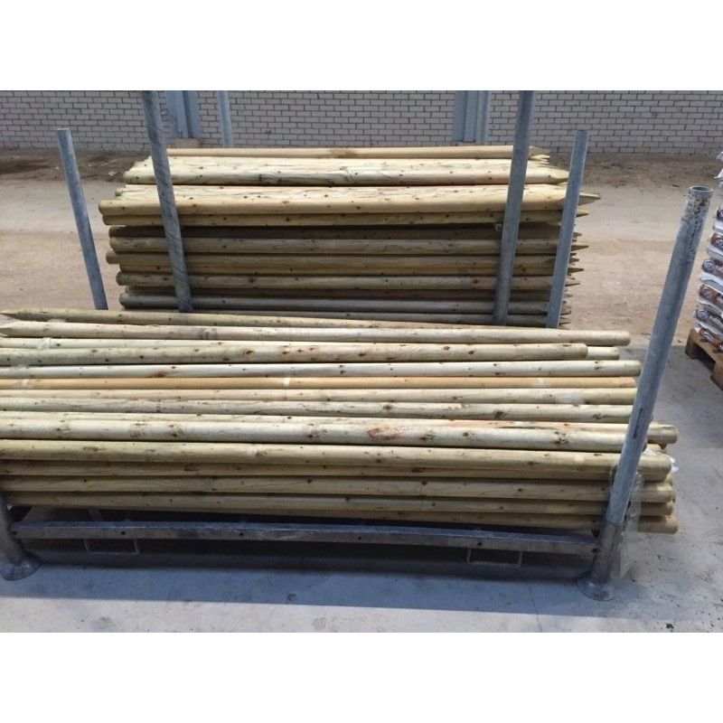 Boompalen van 250 cm lang en 8cm diameter worden enkel gebruikt bij de zwaardere bomen, dakbomen en leibomen met een stamomtrek vanaf 25-30 cm en een stamhoogte van minimaal 200 cm. Ons advies is 2-3 palen per boom.