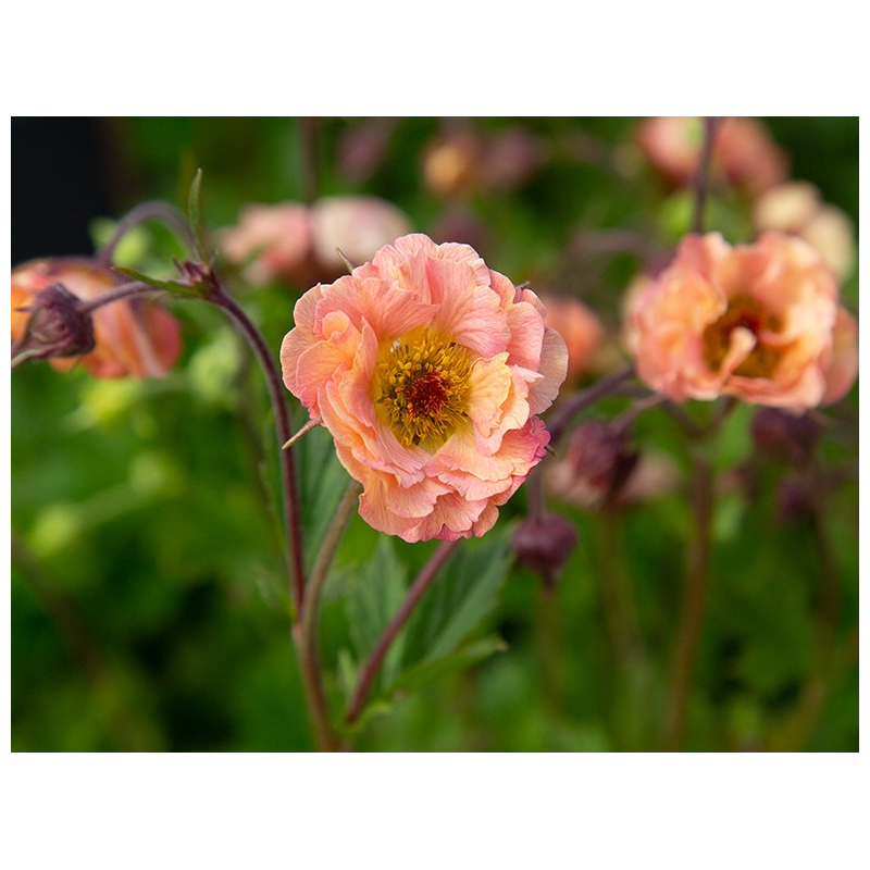 Geum 'Mai Tai' (Nagelkruid) is een aantrekkelijke, half-wintergroene vaste plant die opvalt door haar prachtige abrikoosroze bloemen. De bloei vindt plaats op elegante roodbruine stelen, wat zorgt voor een mooi contrast in de tuin. Deze sierlijke plant voelt zich thuis in de zon of halfschaduw en is een uitstekende keuze voor een kleurrijke border. Daarnaast zijn de bloemen ook geschikt als snijbloem, zodat je er binnen net zo van kunt genieten als buiten.