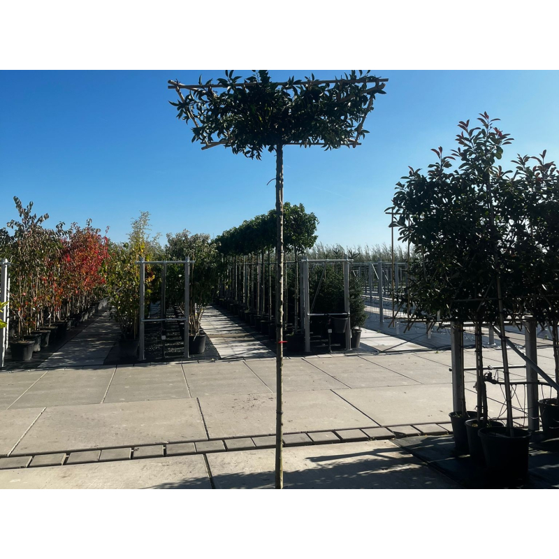 Onze eigen leibomen zijn geleid van bomen die jaarlijks gesnoeid zijn. Hierdoor kunnen we leibomen met een relatief vol leirek leveren.