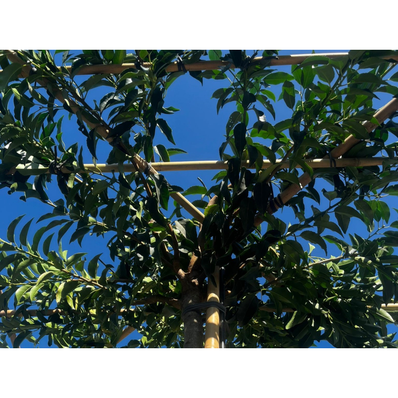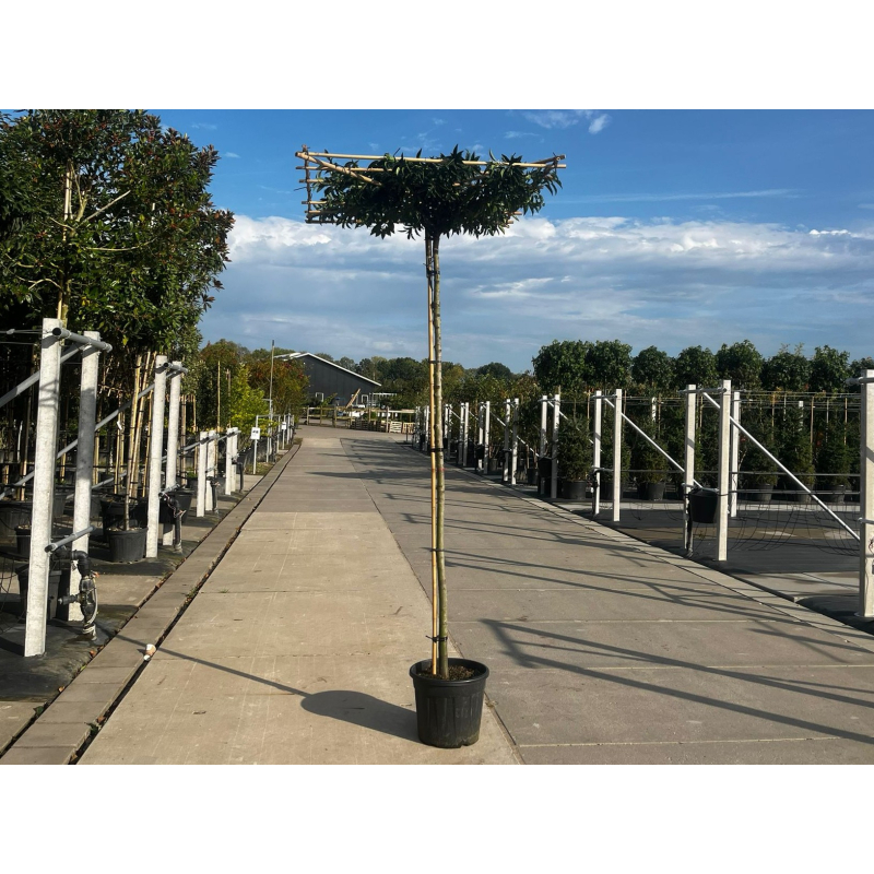 De Prunus Lusitanica Angustifolia in dakvorm (Portugese Leilaurier) is een compacte, groenblijvende dakboom met kleine, donkergroene bladeren. In het voorjaar komt het nieuwe blad frisgroen uit en is het hele dak in een lentelook gehuld. In de zomer kleuren de bladeren naar glanzend donkergroen en in het najaar lopen de twijgen rood uit. Zo geeft deze Portugese Laurier jaarrond zijn charme.
