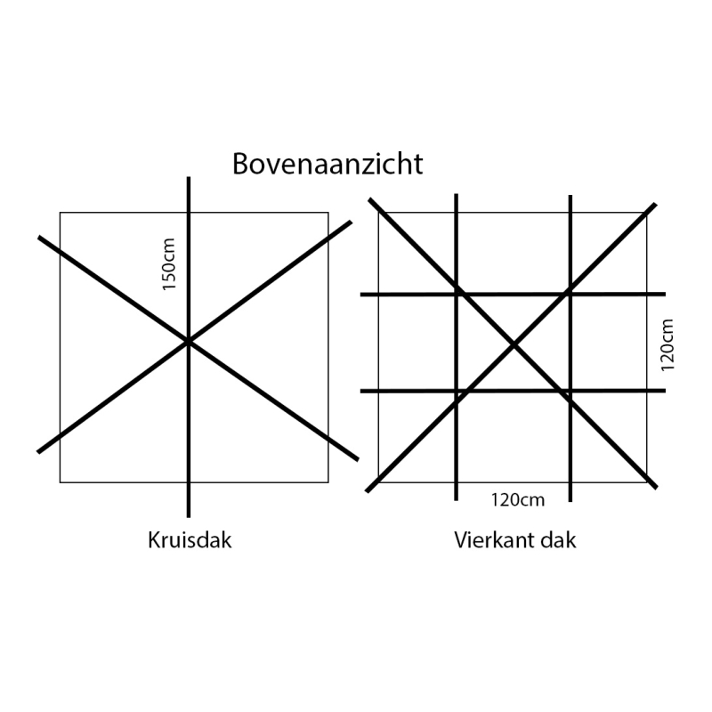 Onze vierkante dakbomen hebben een 120x120cm dak.