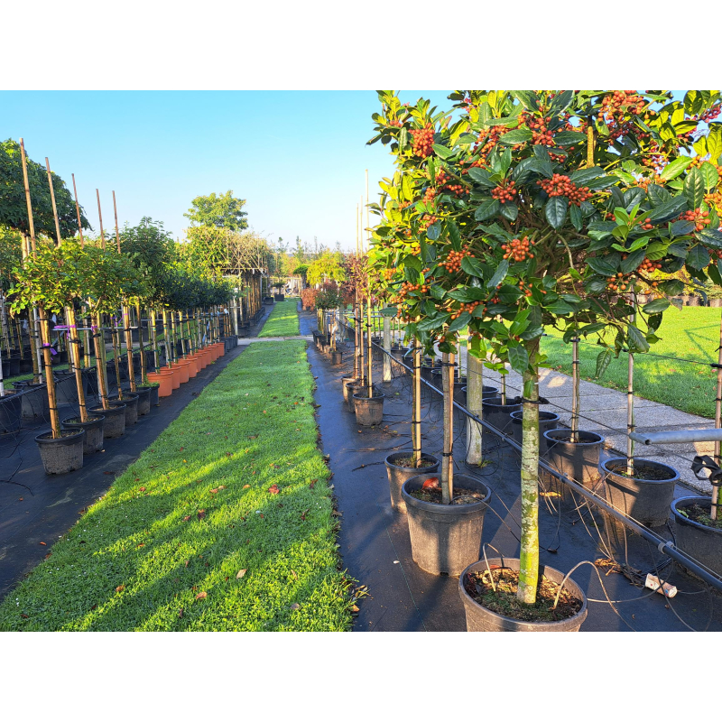 De Ilex Nellie Stevens (Hulst) is een prachtige, opvallende, wintergroene boom. Deze halfstam heeft een mooie volle bolvormige kroon. Door jaarlijkse snoei blijft deze er mooi strak en compact uitzien. Deze wintergroene Hulst heeft getande donkergroene, glanzende bladeren, in het voorjaar witte bloemen en in het najaar talrijke rode bessen die de winter door blijven hangen. De Ilex Nellie Stevens is een sterke boom die goed winterhard is.