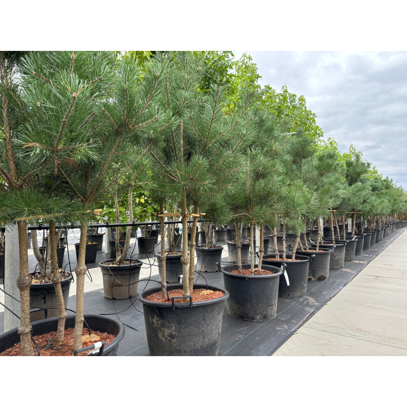 🌿 Tip: Plant de Pinus nigra solitair in een open ruimte zodat hij volledig tot zijn recht komt. Verlichting onder de stammen maakt het 's avonds een echte blikvanger.