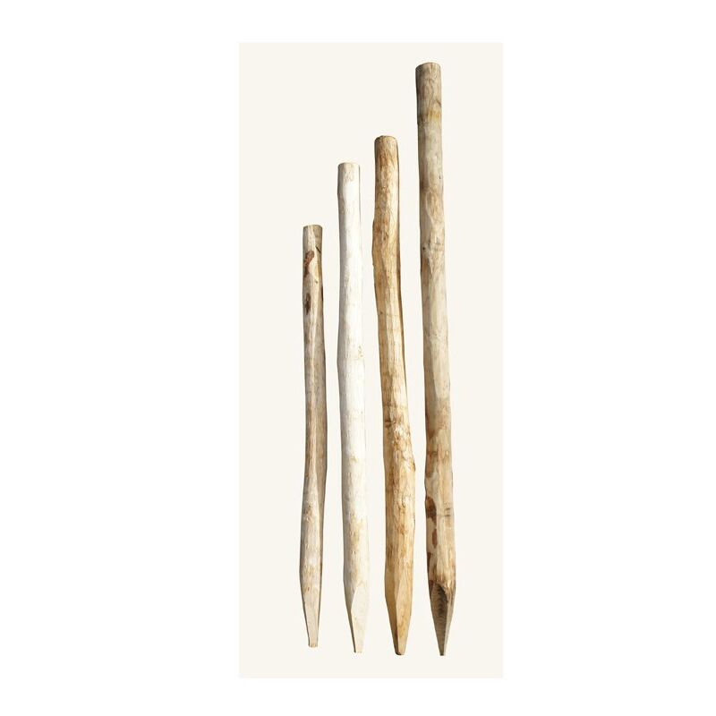 Kastanje palen zijn gemaakt van het hout van de tamme kastanjeboom. Deze houtsoort staat bekend om haar duurzaamheid en natuurlijke weerstand tegen houtrot en insectenschade.