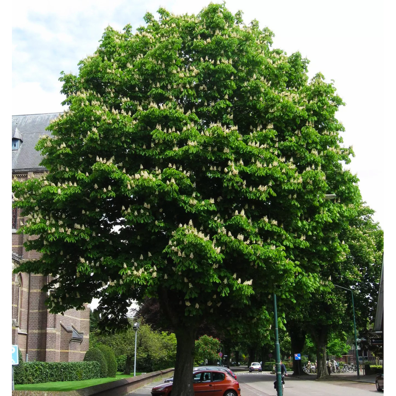 De Aesculus hippocastanum ‘Baumannii’ is een sierboom met een prachtige robuuste kroon die voor veel schaduw zorgt. De Paardekastanje valt op door zijn compacte groeiwijze en dichte, ronde kroon.