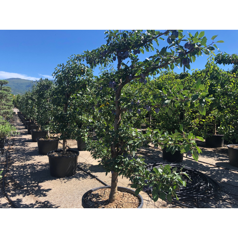 De Laagstam lei-pruim vertakt op 40cm. De halfstam vertakt op 100cm en de hoogstam pruim vertakt op 180, of 200cm.