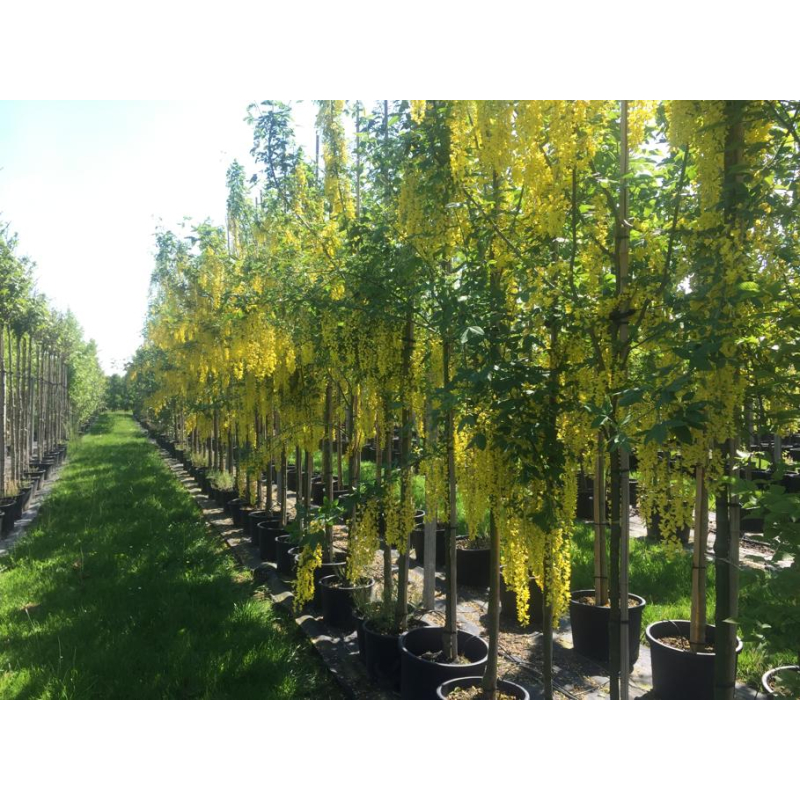 De Laburnum × watereri ‘Vossii’, beter bekend als de Goudenregen, is een sierlijke hoogstamboom die vooral geliefd is om zijn spectaculaire bloei. De goudgele, hangende bloemtrossen zijn soms wel 50cm lang! Deze rijkbloeiende Goudenregen behoort tot de beste en meest krachtige cultivars, met extra lange bloemtrossen en een opvallend volle bloei.